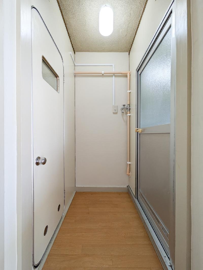 ベランダに給湯器を設置します。