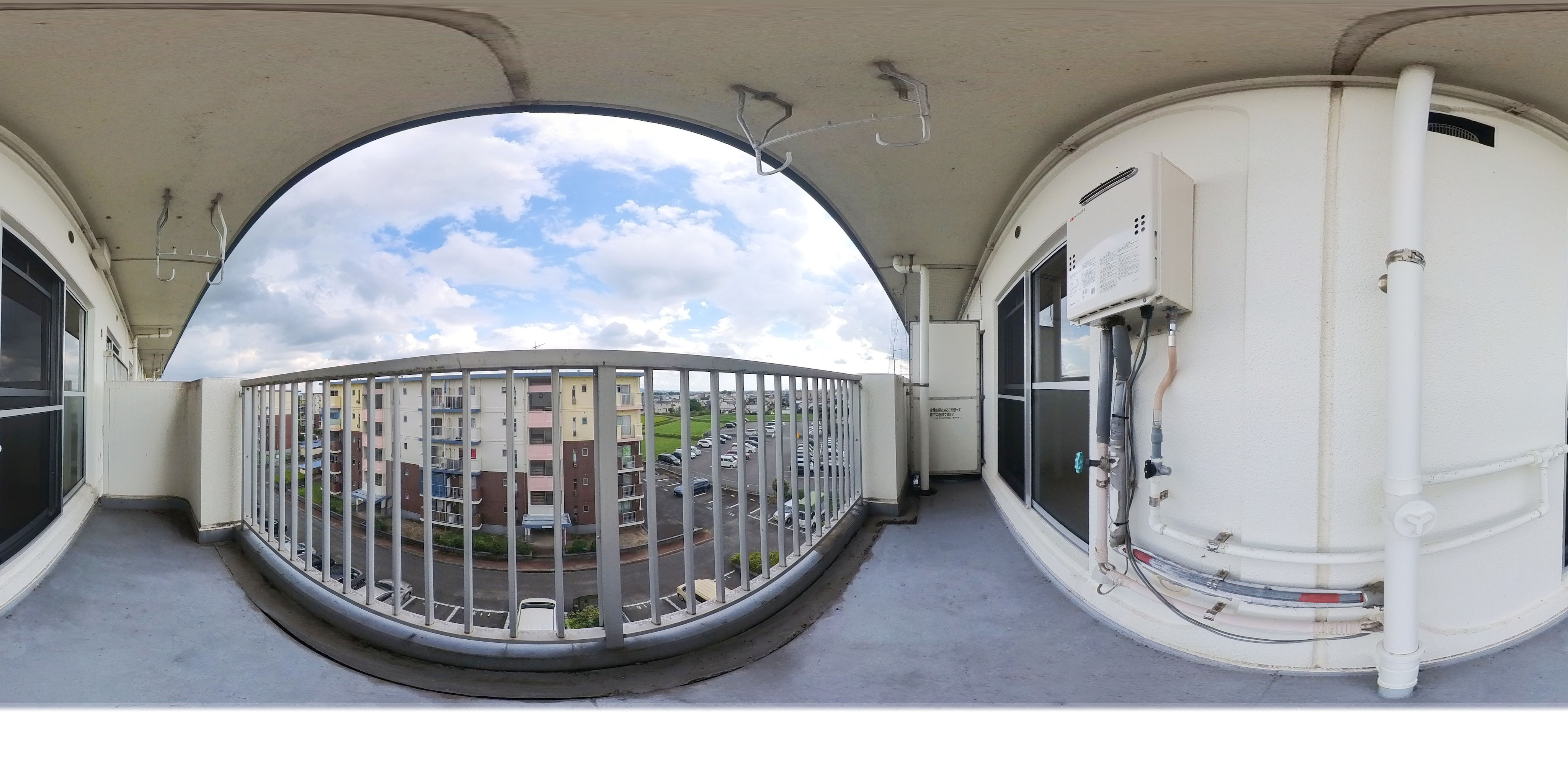 ベランダに給湯器を設置します。