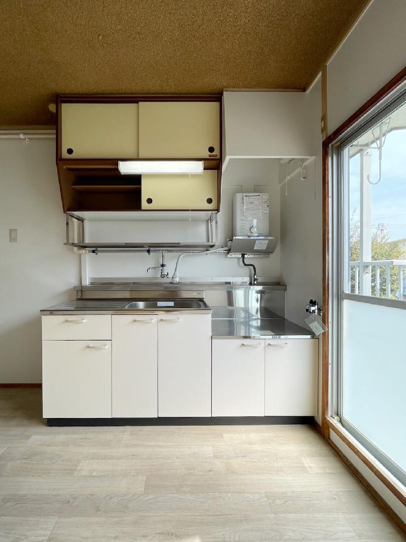お客様の負担で、台所湯沸器を設置してください。(退去時撤去必要)