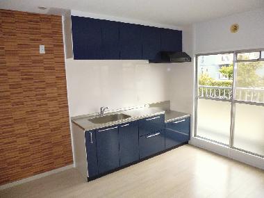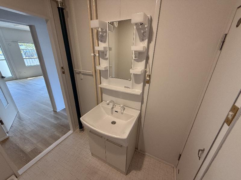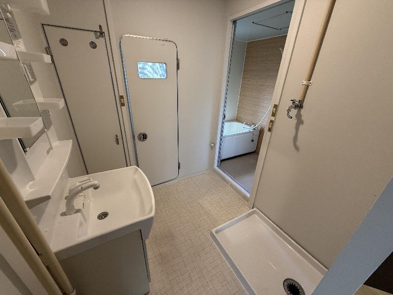 新コンセプトリモデル住宅です。(3点給湯、洋室化、3DK→2LDK、個性的なビニルタイル、シングルレバー・シャワー水栓付洗面化粧台、ウォシュレットなど)